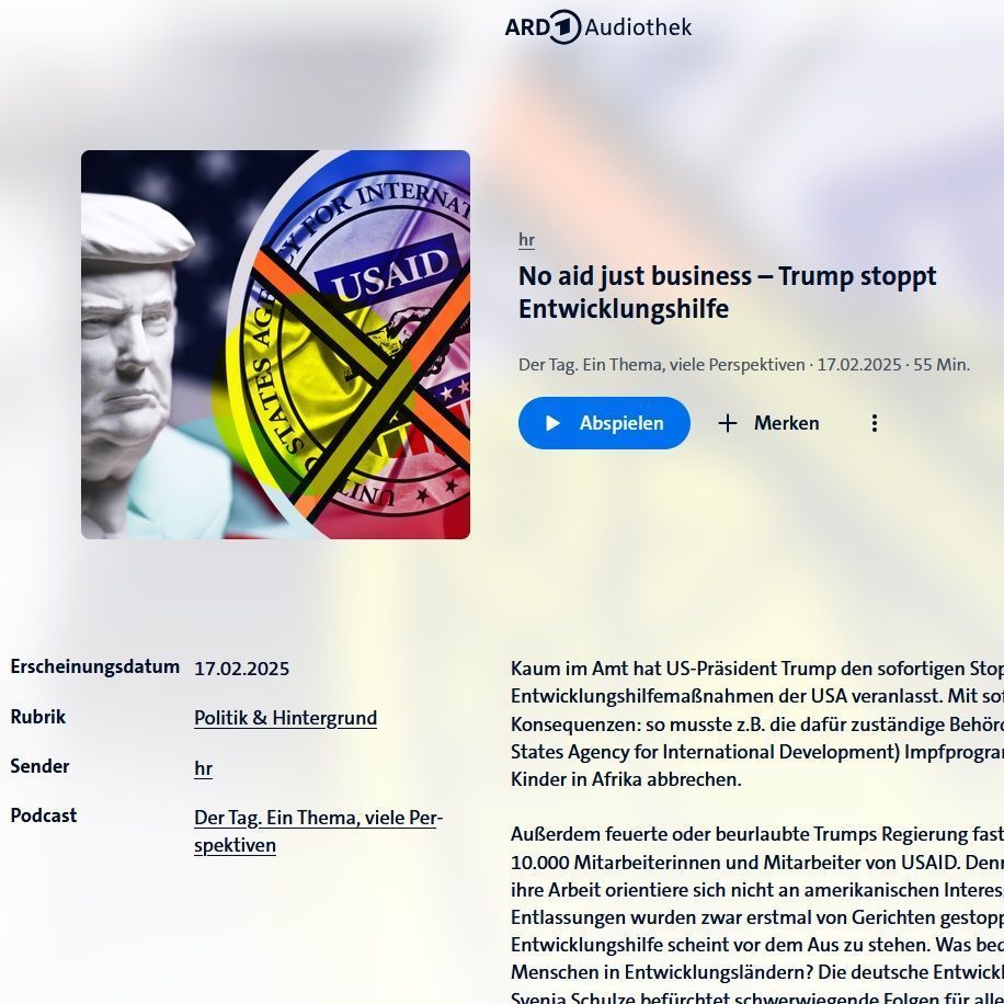 In "Der Tag" vom Hessischen Rundfunk ist u.a. A.-S. Räcker (Initiatorin KETAAKETI) im Gespräch zu Perspektiven in der Entwicklungs-zusammenarbeit, insbesondere nach dem Stopp der Entwicklungs-hilfemaßnahmen der Trump Regierung.
