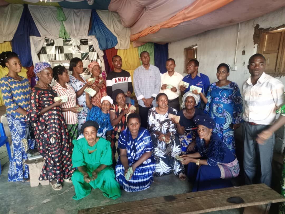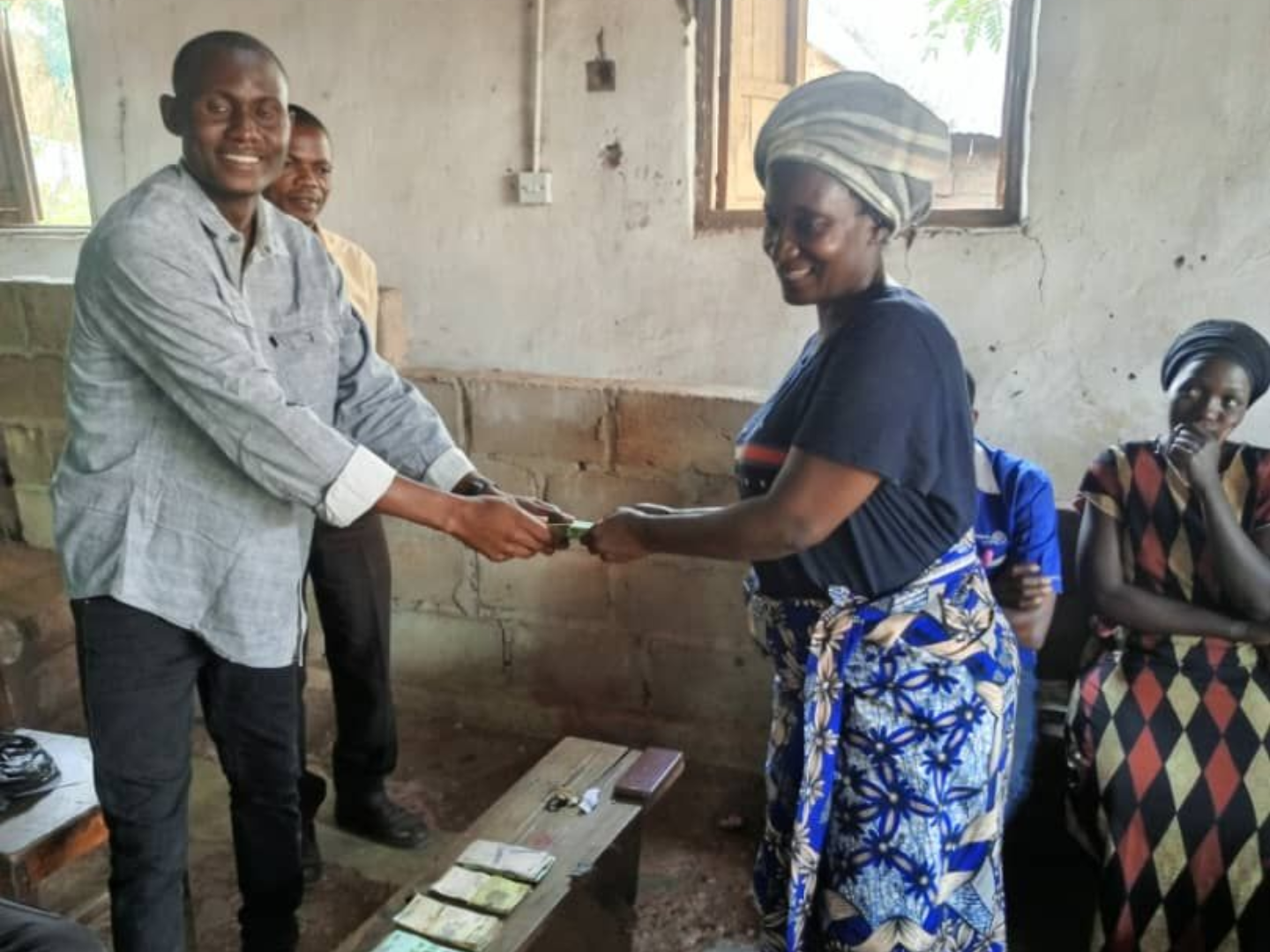 Projektmanager Joseph Mbokani rechts) im Gespräch mit einigen Frauen der Startfinanzierungsgruppe.