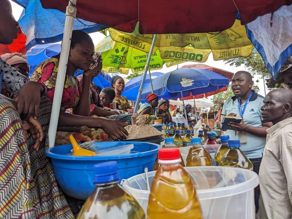 Project manager Joseph Mbokani (second from right) talking to some women from the microfinance group
