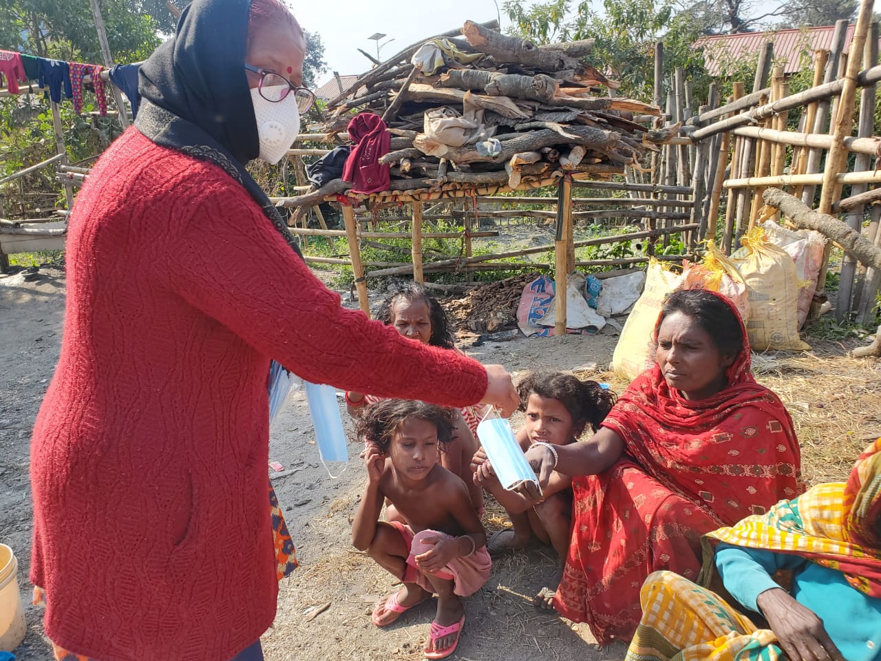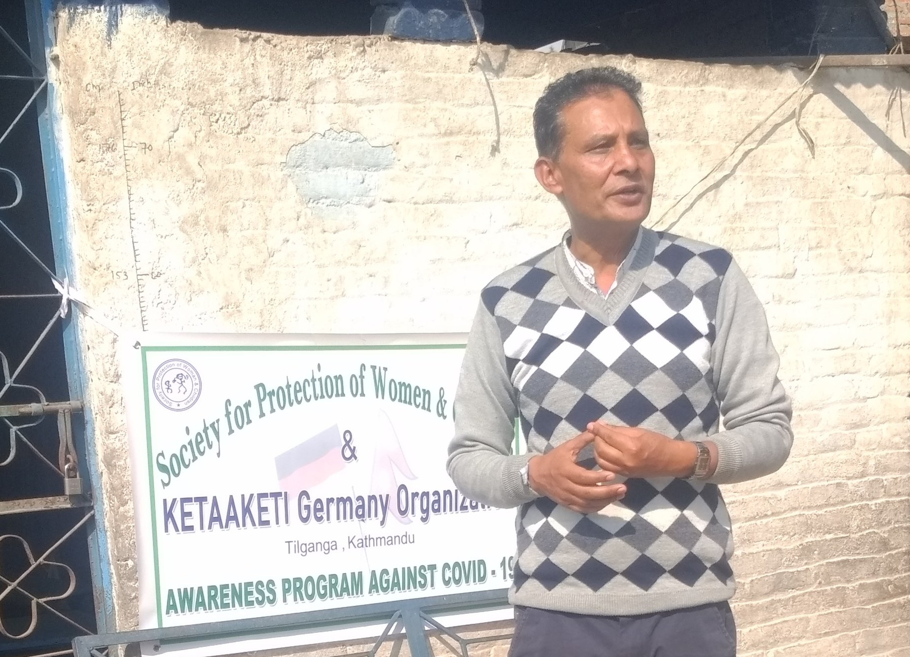 Rajesh Regmi at a Covid-19 awareness campaign for families in the slum near his school.